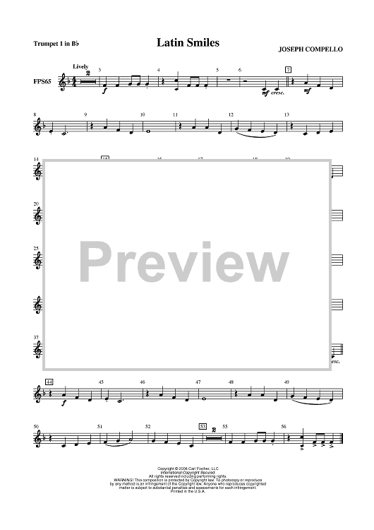 Digital Sheet Music for Latin Smiles - Trumpet 1 in B-flat by Joseph Compello scored for Concert Band; id:409101