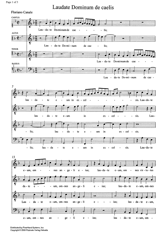"Laudate Dominum de caelis - Score" Sheet Music by Floriano Canale
