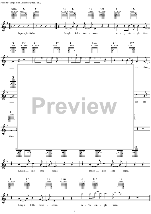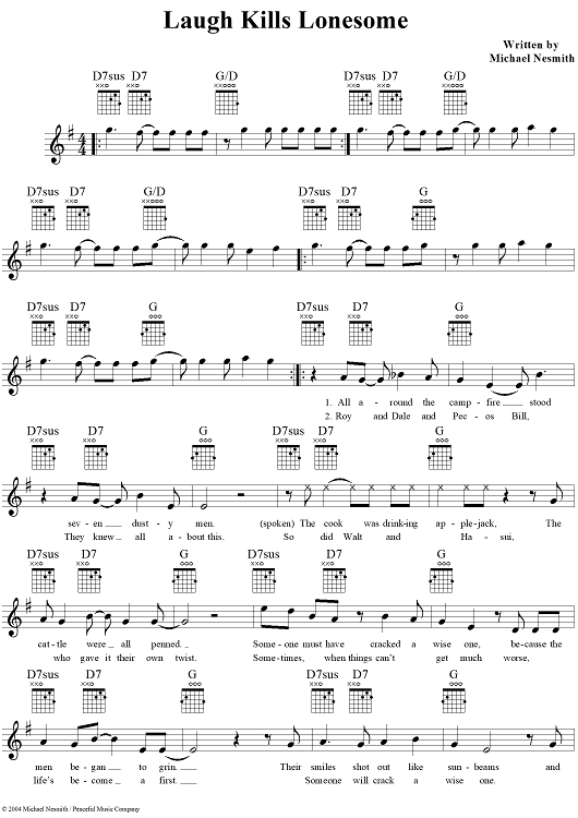 "Laugh Kills Lonesome" Sheet Music by Michael Nesmith