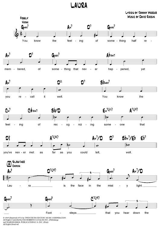 Digital Sheet Music for Laura by Johnny Mercer, David Raksin scored for Lead Sheet; id:307492