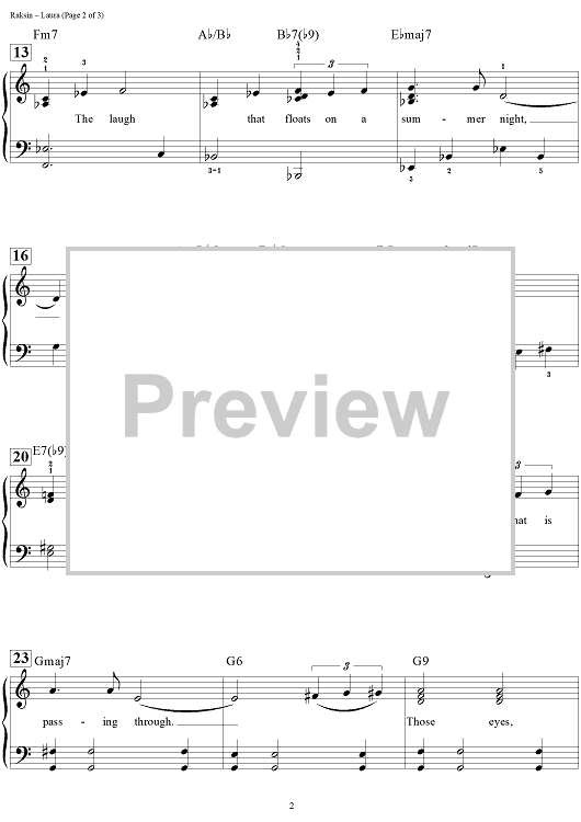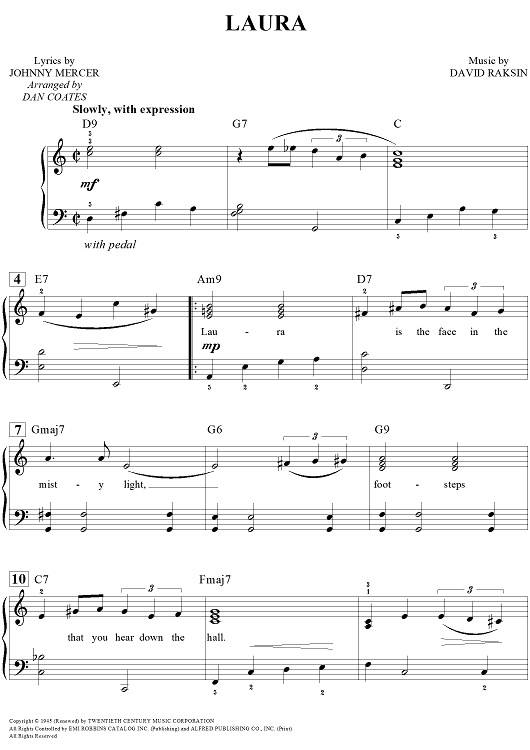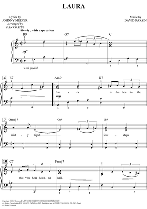 Digital Sheet Music for Laura by Dan Coates, Johnny Mercer, David Raksin scored for Easy Piano/Vocal/Chords; id:457528