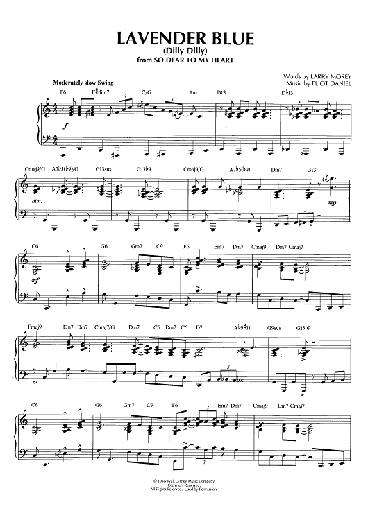Digital Sheet Music for Lavender Blue (Dilly Dilly) - from So Dear To My Heart by Larry Morey, Eliot Daniel, Brent Edstrom scored for Piano Solo; id:466175