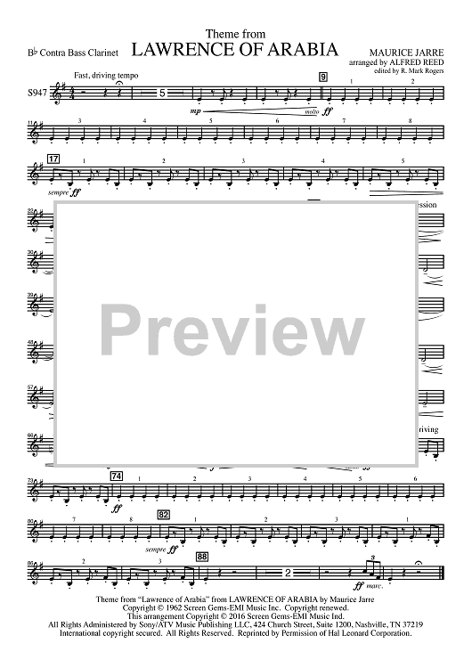 "Lawrence of Arabia - Eb Contra Alto Clarinet / Bb Contra Bass Clarinet" Sheet Music by Maurice Jarre