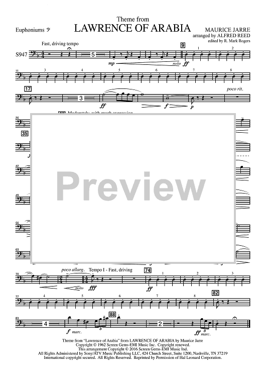 "Lawrence of Arabia - Euphoniums TC/BC" Sheet Music by Maurice Jarre