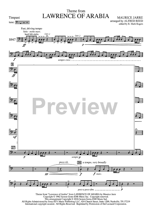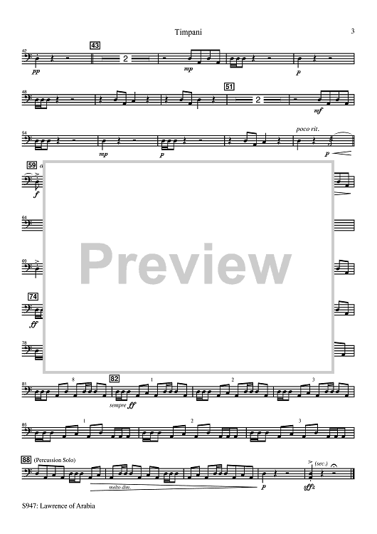 "Lawrence of Arabia - Timpani" Sheet Music by Maurice Jarre