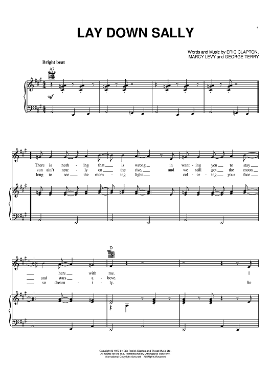 Digital Sheet Music for Lay Down Sally by Eric Clapton, Marcy Levy, George Terry scored for Piano/Vocal/Chords; id:370849
