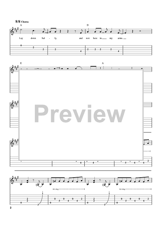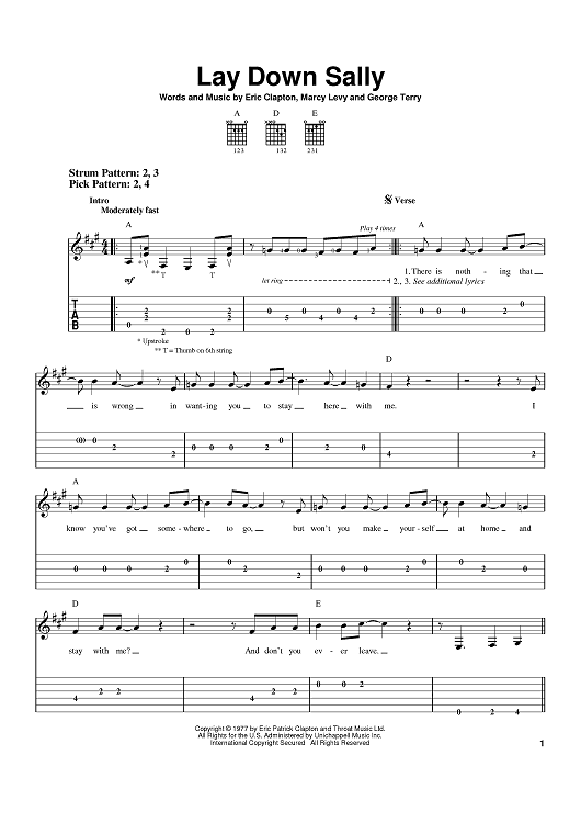 Digital Sheet Music for Lay Down Sally by Eric Clapton, Marcy Levy, George Terry scored for Easy Guitar Tab; id:380382