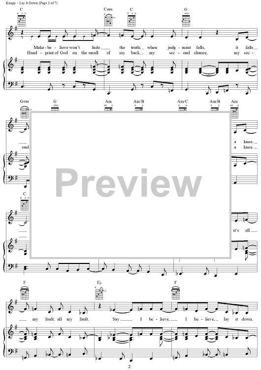 Digital Sheet Music for Lay It Down by Jennifer Knapp scored for Piano/Vocal/Chords; id:386613