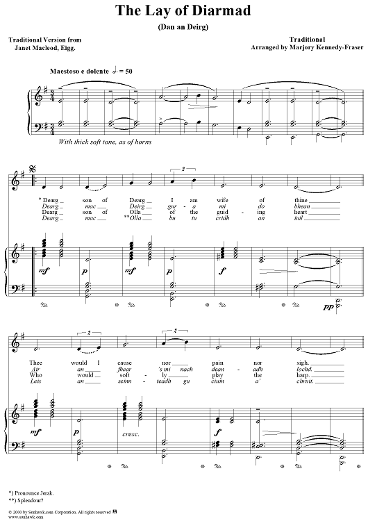 Digital Sheet Music for Lay of Diarmad, Dàn an Deirg by Marjory Kennedy-Fraser, Traditional scored for Piano/Vocal; id:260120