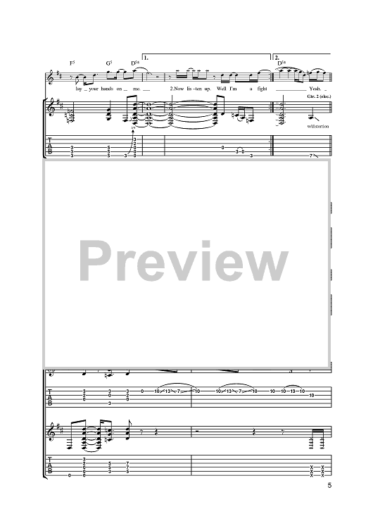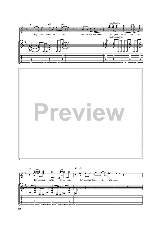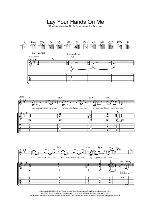 Digital Sheet Music for Lay Your Hands On Me by Bon Jovi, Richie Sambora, Jon Bon Jovi scored for Guitar Tab; id:397046