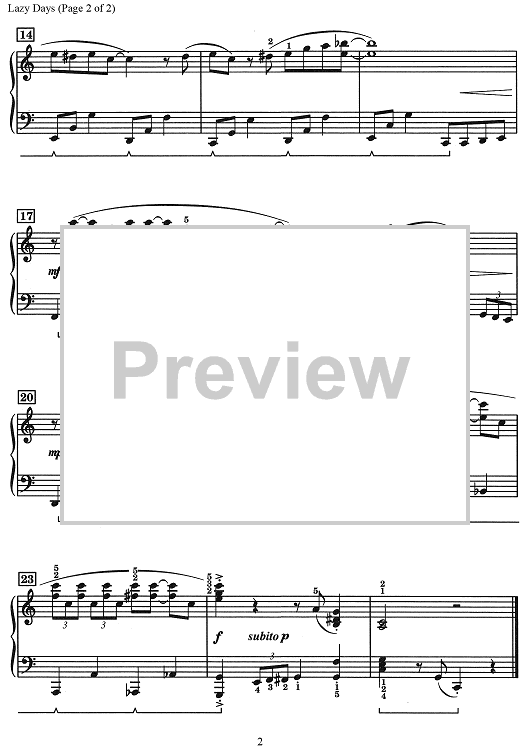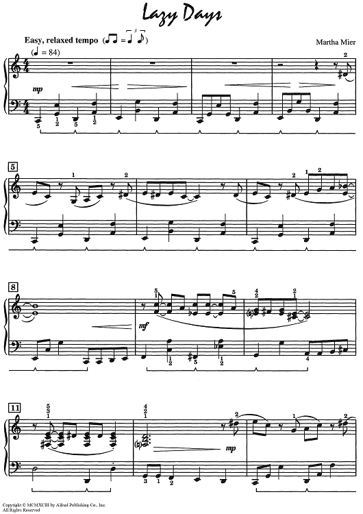 Digital Sheet Music for Lazy Days by Martha Mier scored for Piano; id:506944