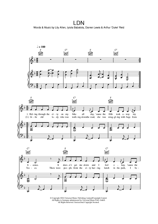 Digital Sheet Music for LDN by Iyiola Babalola, Darren Lewis, Arthur 'Duke' Reid, Lily Allen scored for Piano/Vocal/Chords; id:392068
