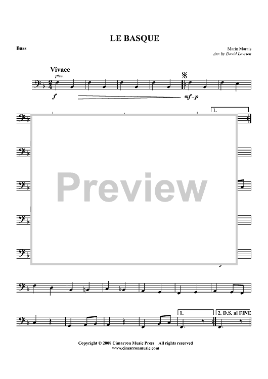 "Le Basque - Bass" Sheet Music by Marin Marais