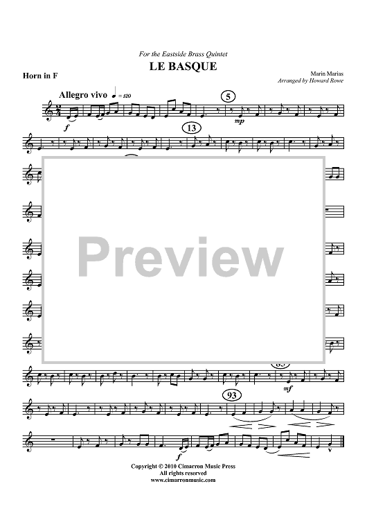 Digital Sheet Music for Le Basque - Horn in F by Marin Marais, Howard Rowe scored for Brass Quintet; id:427118