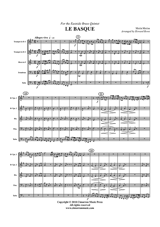 Digital Sheet Music for Le Basque - Score by Marin Marais, Howard Rowe scored for Brass Quintet; id:427115