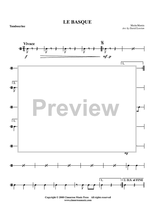 "Le Basque - Tambourine" Sheet Music by Marin Marais