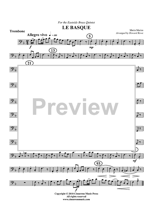 Digital Sheet Music for Le Basque - Trombone by Marin Marais, Howard Rowe scored for Brass Quintet; id:427119