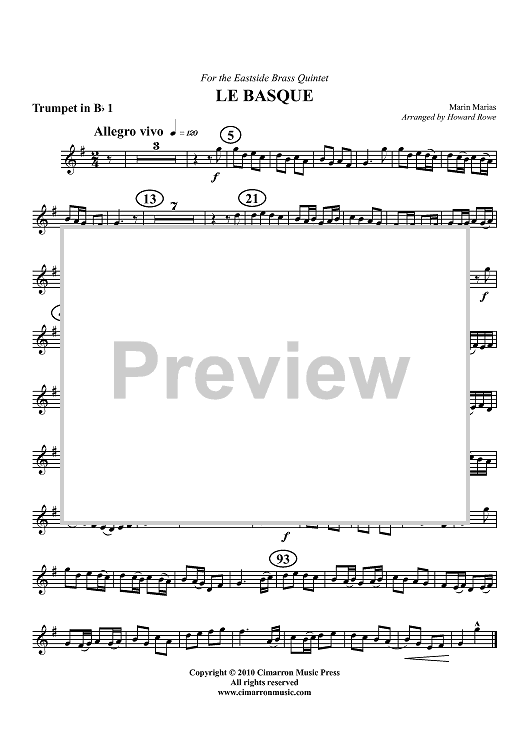 Digital Sheet Music for Le Basque - Trumpet 1 in Bb by Marin Marais, Howard Rowe scored for Brass Quintet; id:427116