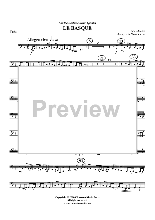 Digital Sheet Music for Le Basque - Tuba by Marin Marais, Howard Rowe scored for Brass Quintet; id:427120