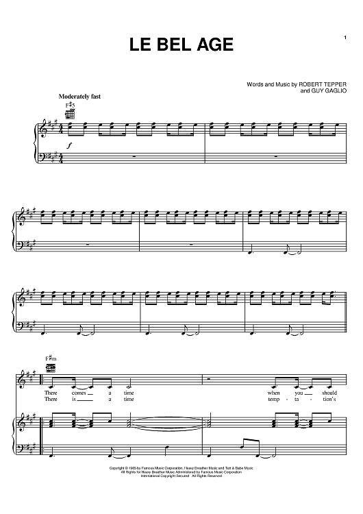 Digital Sheet Music for Le Bel Age by Pat Benatar, Guy Gaglio, Robert Tepper scored for Piano/Vocal/Chords; id:388474