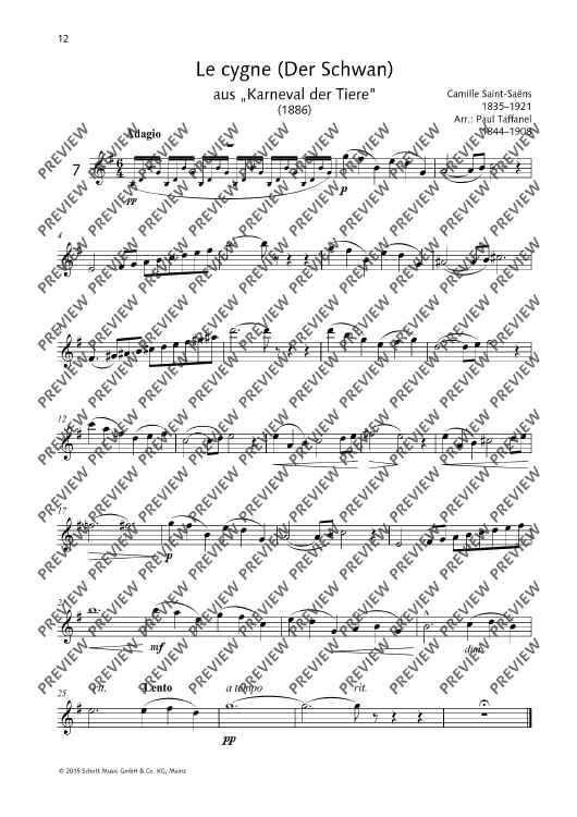 Digital Sheet Music for Le cygne (The Swan) by Camille Saint-Saëns, Claude-Paul Taffanel scored for Flute And Piano; id:489815
