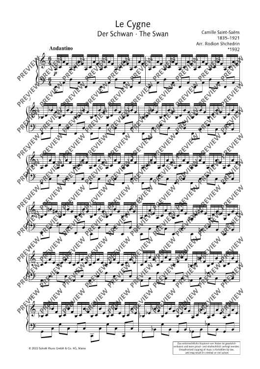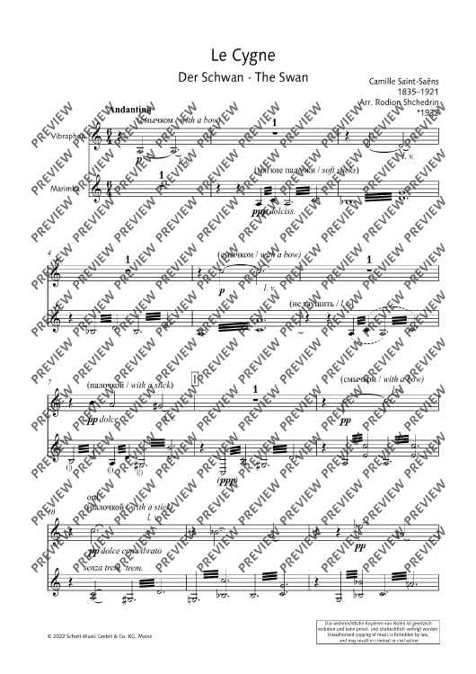 Digital Sheet Music for Le cygne (The Swan) - Score and Parts by Camille Saint-Saëns, Rodion Shchedrin scored for Voice (violin, Oboe, Clarinet), Vibraphone (also Crotales), Marimba (5 Octaves) And Harp; id:496833