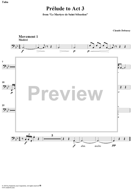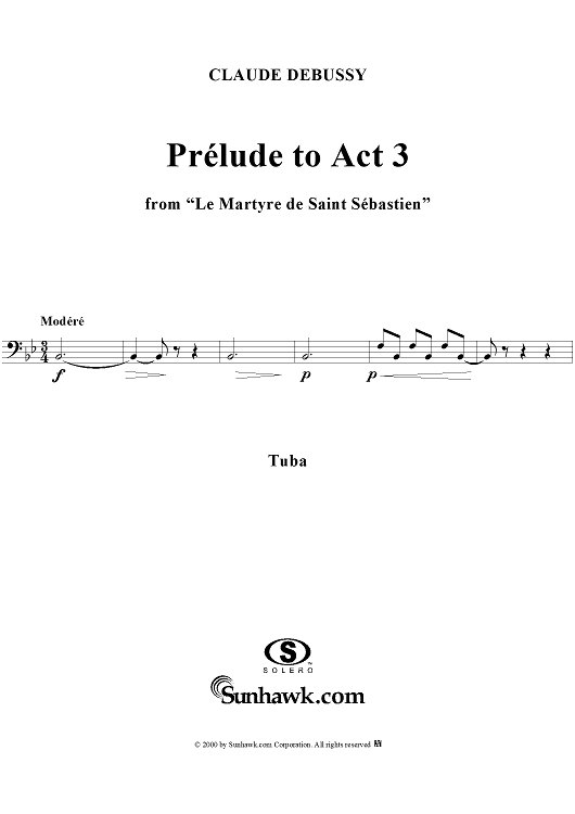 "Le Martyre de Saint Sébastien: Prélude to Act 3 - Tuba" Sheet Music by Claude Debussy