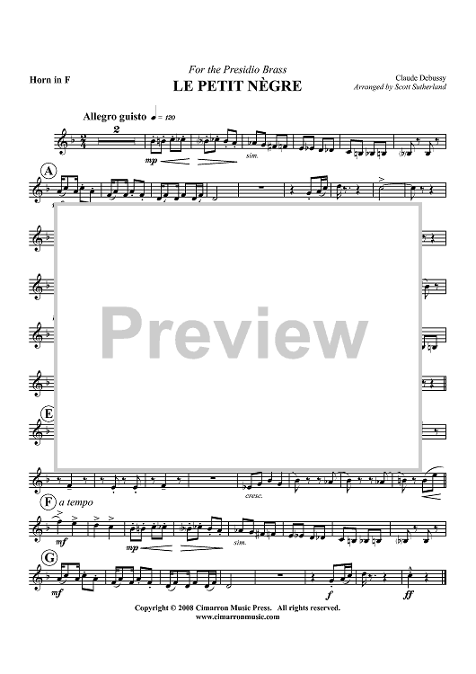Digital Sheet Music for Le Petite Negre - Horn in F by Claude Debussy, Scott Sutherland scored for Brass Quintet; id:415971