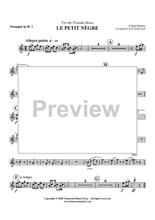 Digital Sheet Music for Le Petite Negre - Trumpet 1 in Bb by Claude Debussy, Scott Sutherland scored for Brass Quintet; id:415969