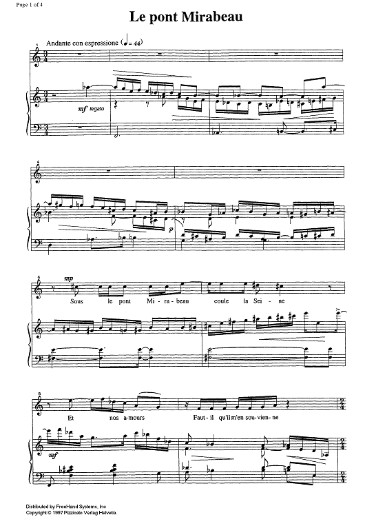 Digital Sheet Music for Le pont Mirabeau by , Marco Sofianopulo scored for Soprano/Piano; id:334342