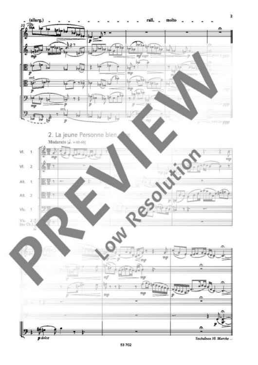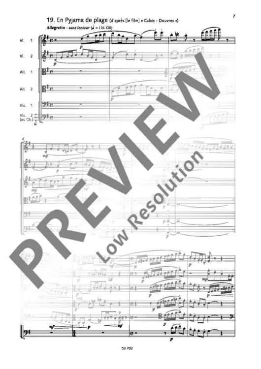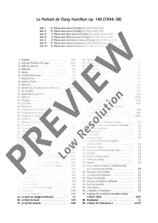 With this edition, we present another part of the composition 'Le Portrait de Daisy Hamilton' inspired by the film, Koechlin's homage to the film actress Lilian Harvey. From a total of 89 uninstrumented short pieces, some of them unfinished, the editor carefully assigned selected pieces to instruments which suit their character best. Ten charming miniatures were ideal for string sextet and are published in the present edition for the first time.