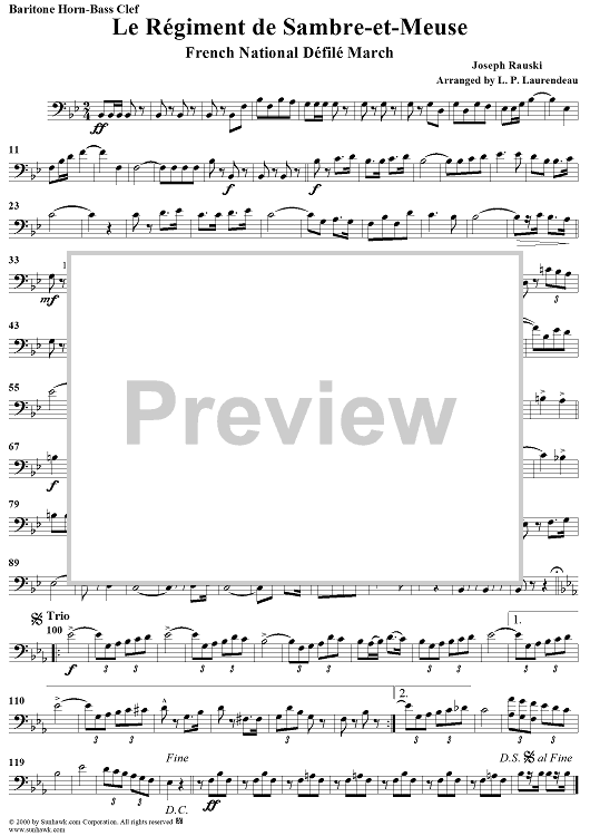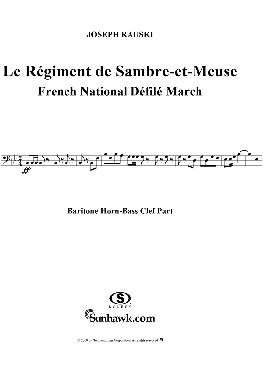 "Le Régiment de Sambre-et-Meuse - Baritone Horn-Bass Clef" Sheet Music by Joseph Rauski