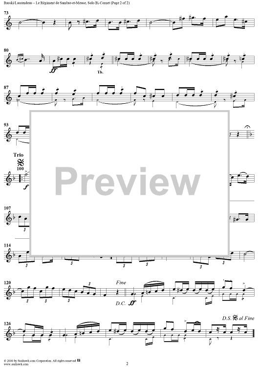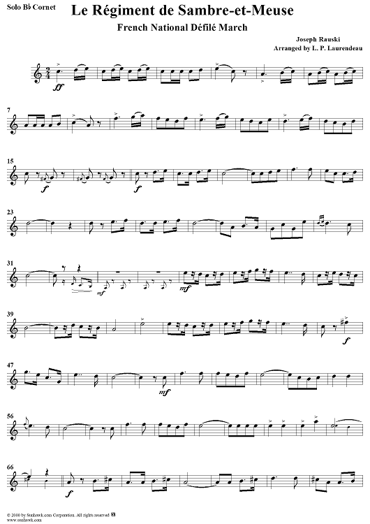 Digital Sheet Music for Le Régiment de Sambre-et-Meuse - Solo Cornet by L. P. Laurendeau, Joseph Rauski scored for Concert Band; id:255807