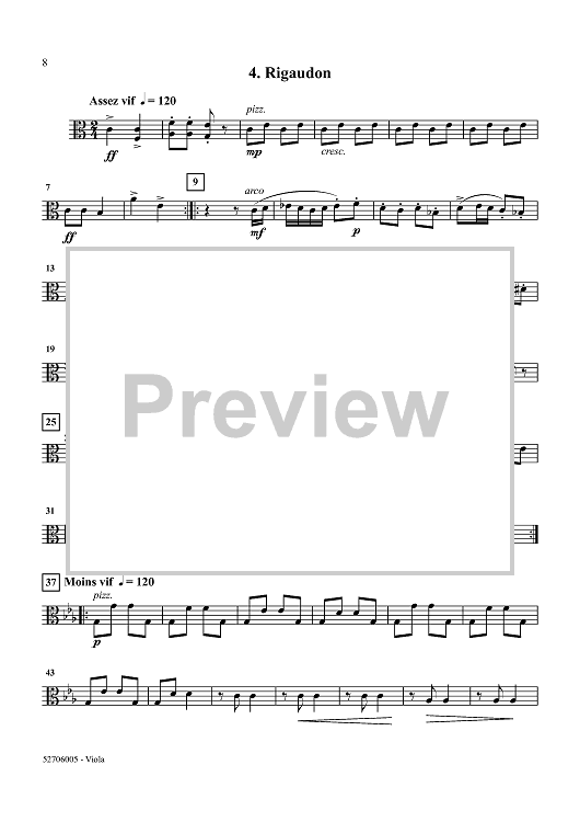 Digital Sheet Music for Le Tombeau de Couperin for Oboe and String Quartet - Viola by Maurice Ravel, Robert Weiner scored for Oboe and String Quartet; id:452254