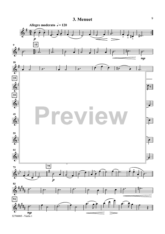 Digital Sheet Music for Le Tombeau de Couperin for Oboe and String Quartet - Violin 1 by Maurice Ravel, Robert Weiner scored for Oboe and String Quartet; id:452252