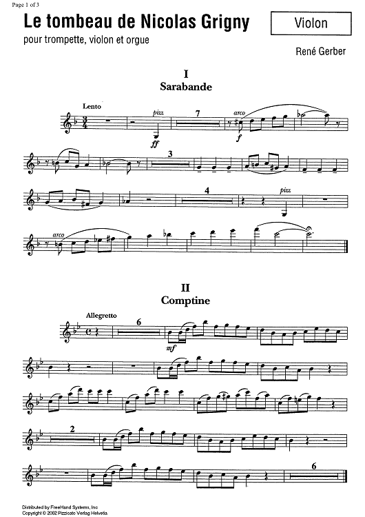 "Le tombeau de Nicolas Grigny - Violin" Sheet Music by René Gerber