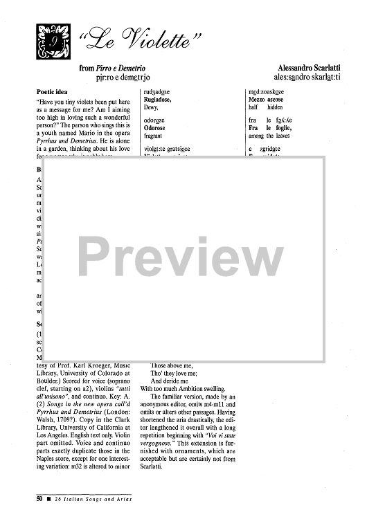 "Le Violette (The Violets)" Sheet Music by Alessandro Scarlatti