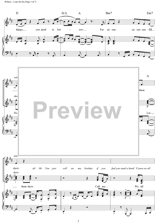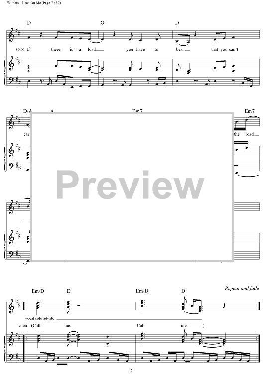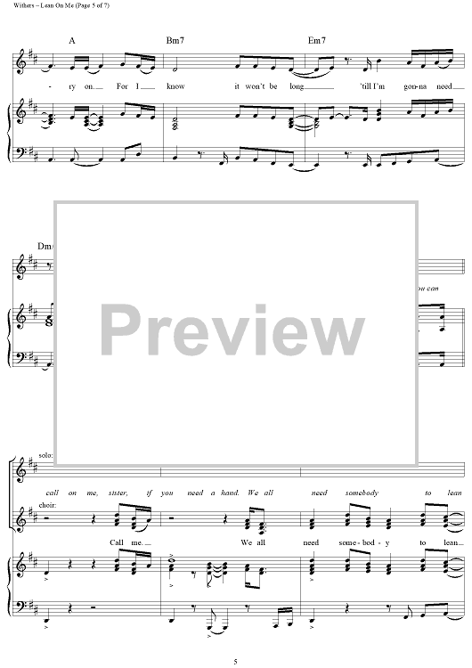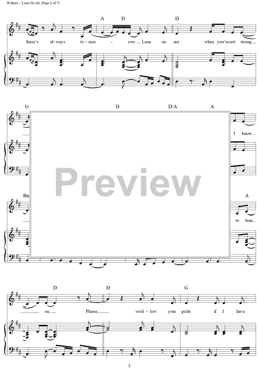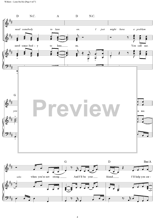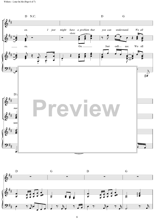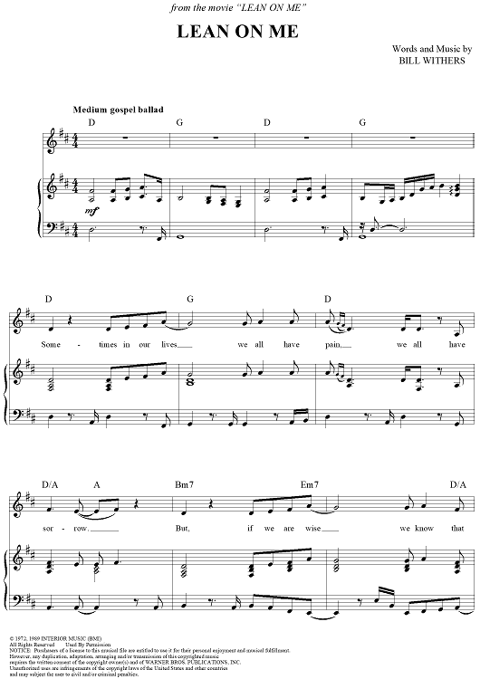 Digital Sheet Music for Lean On Me by Club Nouveau, Thelma Houston, Bill Withers, The Winans scored for Piano/Vocal/Chords; id:112252