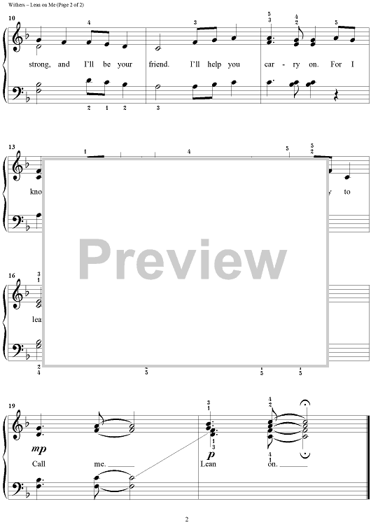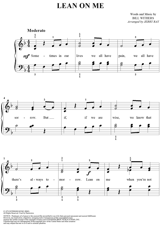 Digital Sheet Music for Lean On Me by Club Nouveau, Thelma Houston, Bill Withers, The Winans scored for Easy Piano/Vocal; id:197243
