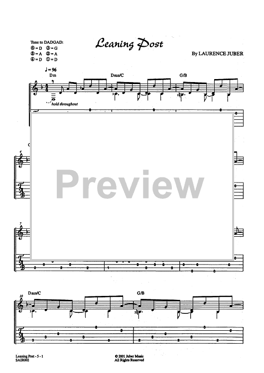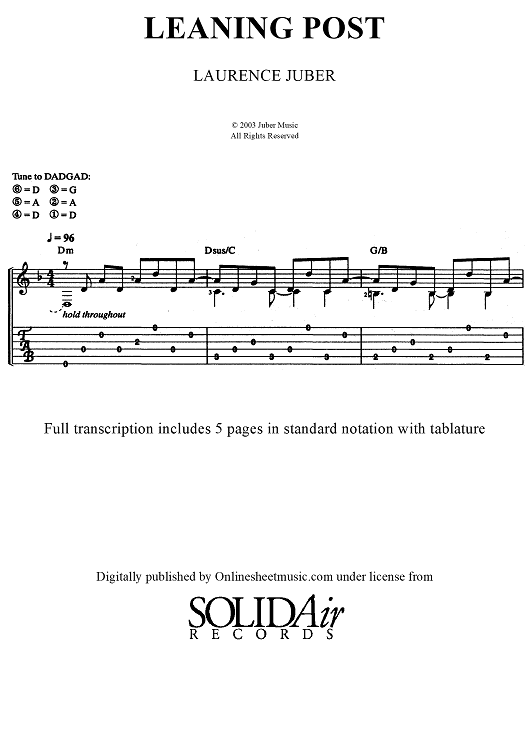 Digital Sheet Music for Leaning Post (With Embedded Audio) by , Laurence Juber scored for Guitar Tab; id:452192