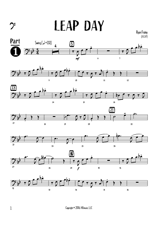 "Leap Day - Bass Clef Instruments Part 1" Sheet Music by Ryan Fraley