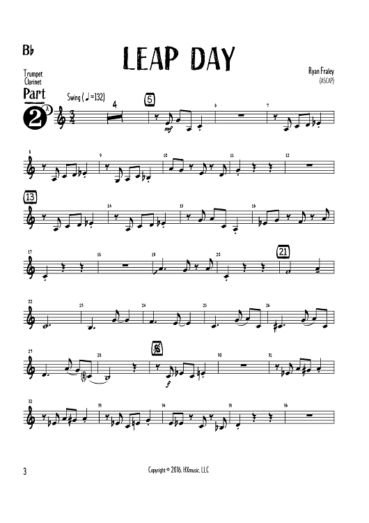 "Leap Day - Bb Instruments Part 2" Sheet Music by Ryan Fraley