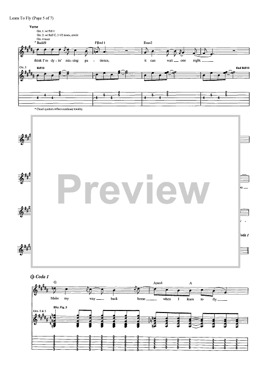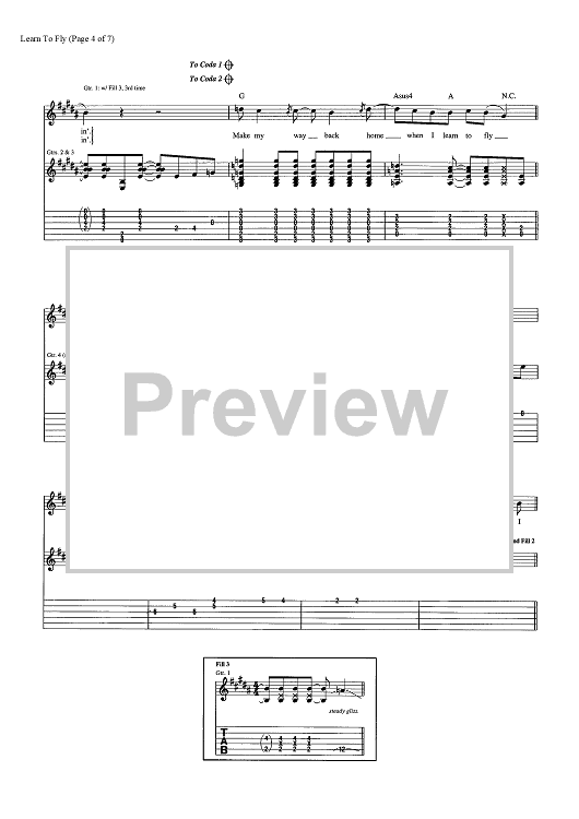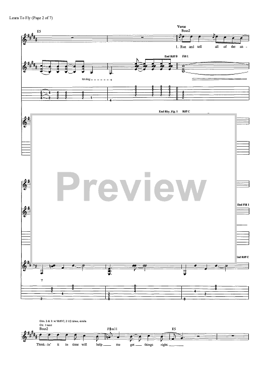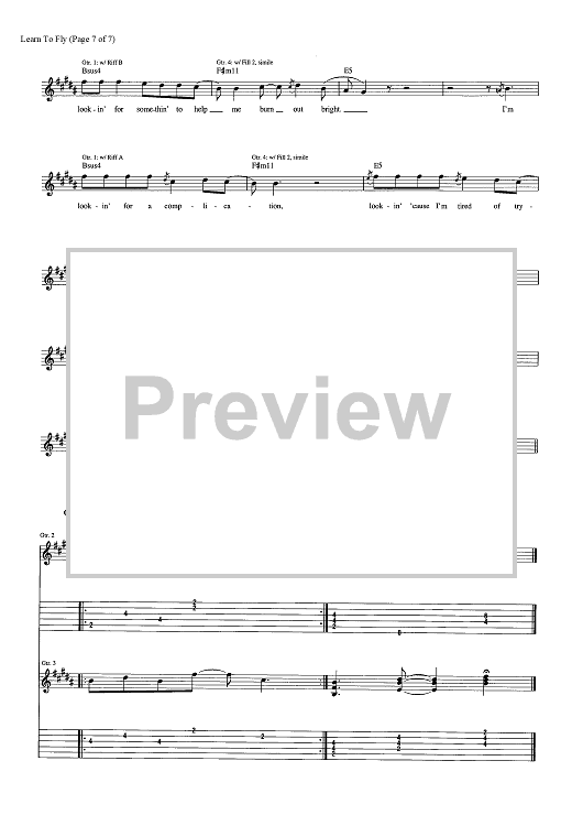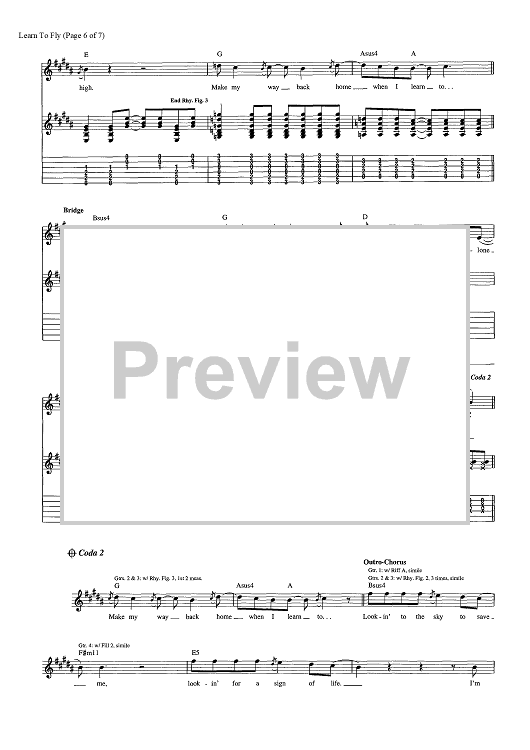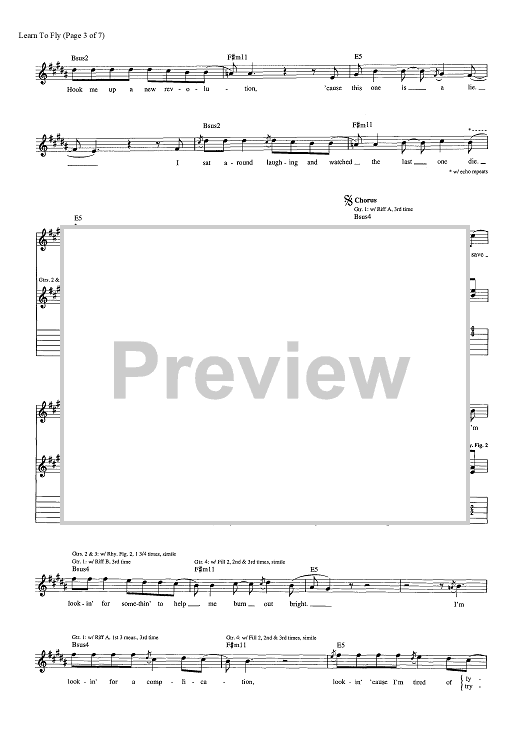 Digital Sheet Music for Learn to Fly by Foo Fighters, Dave Grohl, Taylor Hawkins, Nate Mendel scored for Guitar Tab/Vocal/Chords; id:456892