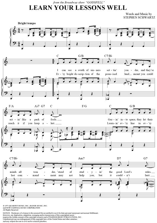 Digital Sheet Music for Learn Your Lessons Well by Stephen Schwartz scored for Piano/Vocal/Chords; id:112747