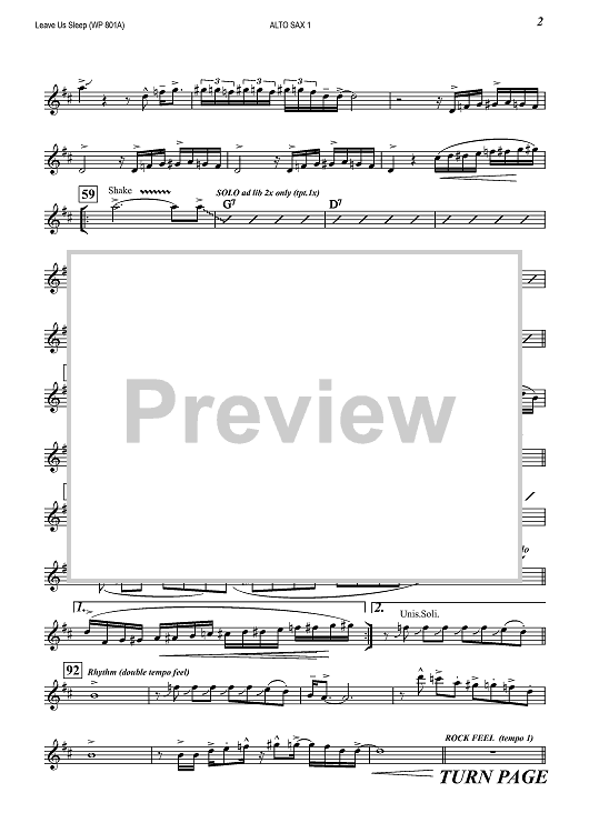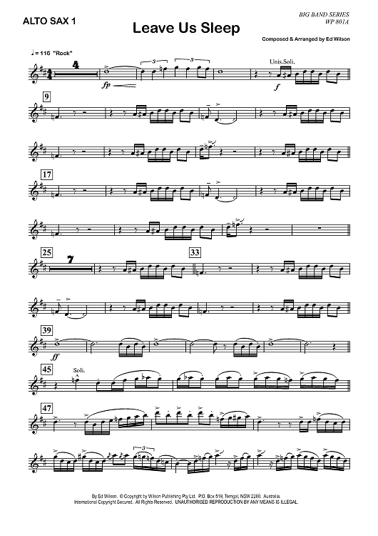 Digital Sheet Music for Leave Us Sleep - Alto Saxophone 1 by Ed Wilson scored for Jazz Ensemble; id:362120