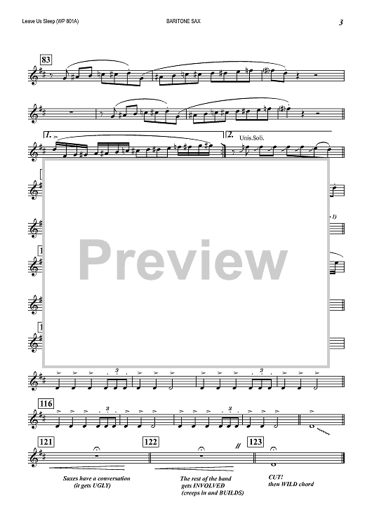 Digital Sheet Music for Leave Us Sleep - Baritone Saxophone by Ed Wilson scored for Jazz Ensemble; id:362124