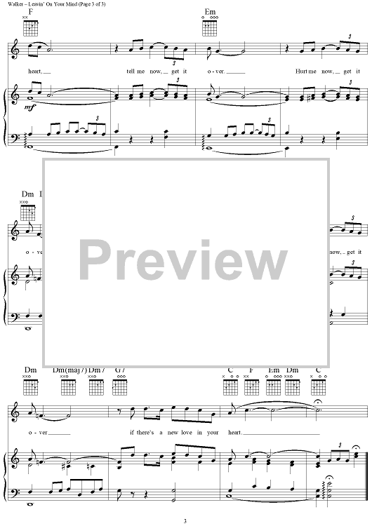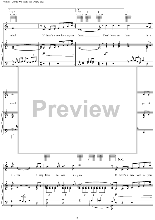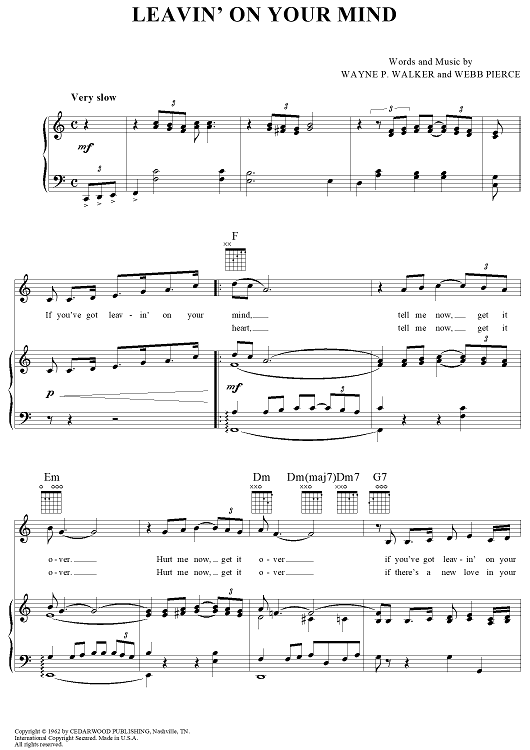 Digital Sheet Music for Leavin' On Your Mind by Patsy Cline, Webb Pierce, Wayne P. Walker scored for Piano/Vocal/Chords; id:120296