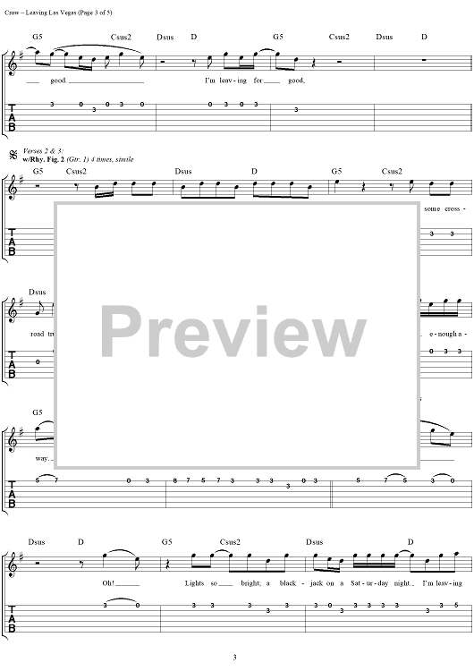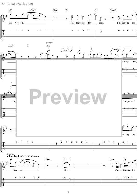 Digital Sheet Music for Leaving Las Vegas by Sheryl Crow, Kevin Gilbert, Bill Bottrell, David Baerwald, David Ricketts scored for Easy Guitar Tab/Vocal; id:116140