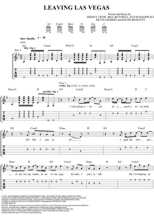 "Leaving Las Vegas" Sheet Music by Sheryl Crow