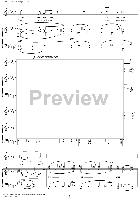 Digital Sheet Music for Lebe Wohl, No. 36 from "Mörike Lieder" by Hugo Wolf, Eduard Mörike scored for Voice/Piano; id:263394